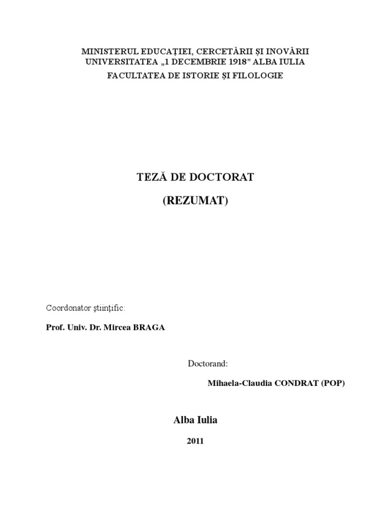 Teze de doctorat recent finalizate i care au primit calificative foarte bune la susinerea public. La thèse de doctorat qui désigne le mémoire écrit basé sur ces travaux de recherches, définit également la soutenance devant un jury. Download as pdf, txt or read online from scribd. Elemente de design grafic în creația personajelor. Le programme de doctorat à distance online peut aussi déterminer une série de livres de texte sur lesquels nous exigerons la rédaction de rapports de 20 à 35 pages comme évaluation additionnelle, en vue de compléter le nombre de crédits requis par le doctorat.