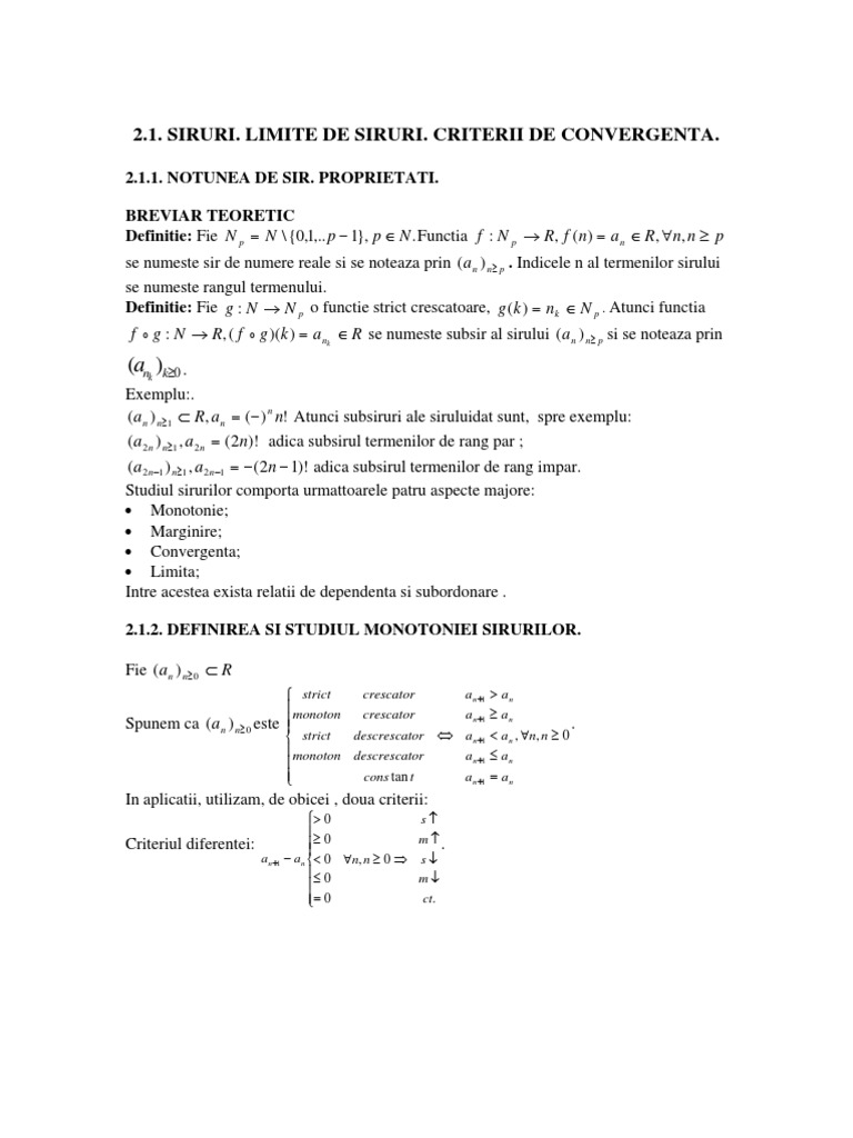 (i) mărginit inferior dacă există α r astfel încât α x n, n n; Șirul de numere reale are limita dacă și numai dacă în afara oricărei. Reader view şiruri de numere reale şirul este o funcţie definită pe mulţimea numerelor naturale cu valori în mulţimea numerelor reale.